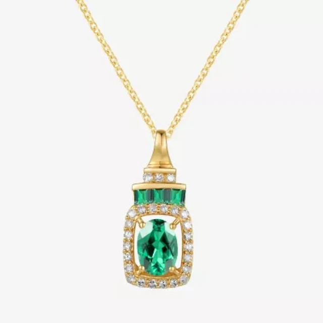 Womens Emeral-cut Gemstone & 1/2 CT. T.W. Lab-Grown Diamond 10K Gold Pendant Necklace