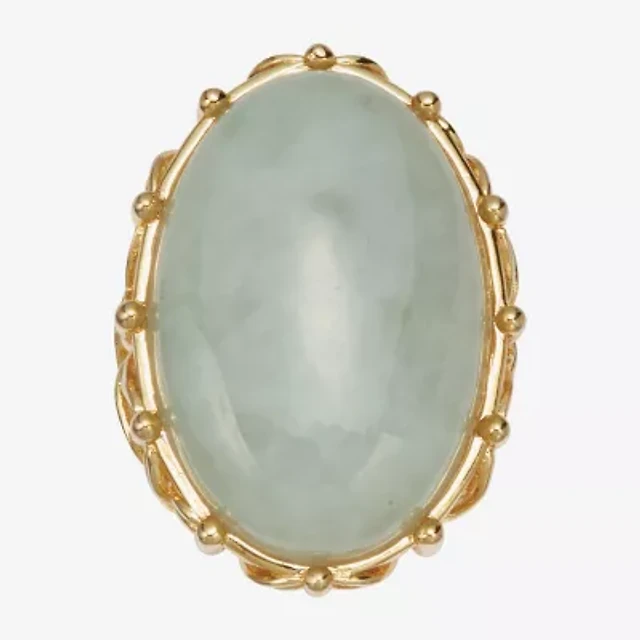 Womens Genuine Green Jade 18K Gold Over Brass Oval Cocktail Ring