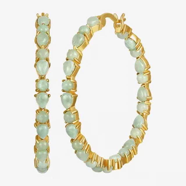 Womens Genuine Green Jade 18K Gold Over Silver 42.1mm Hoop Earrings