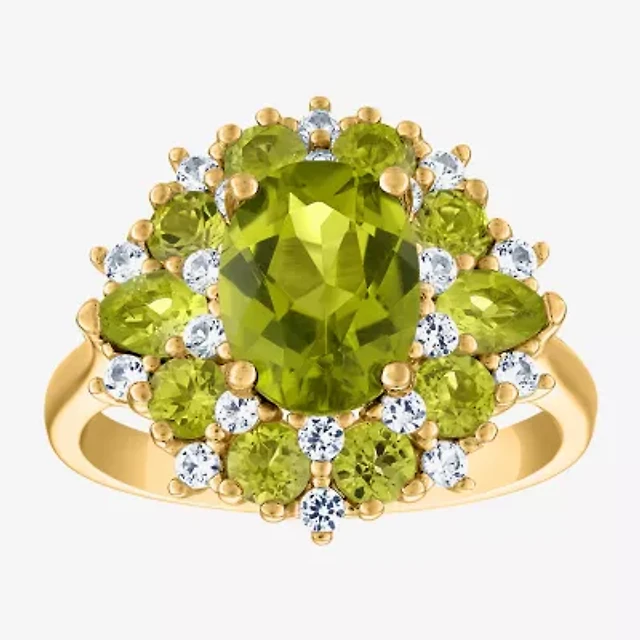 Womens Genuine Green Peridot 14K Gold Over Silver Cocktail Ring