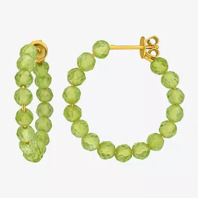 Womens Genuine Green Peridot 14K Gold 20.5mm Hoop Earrings