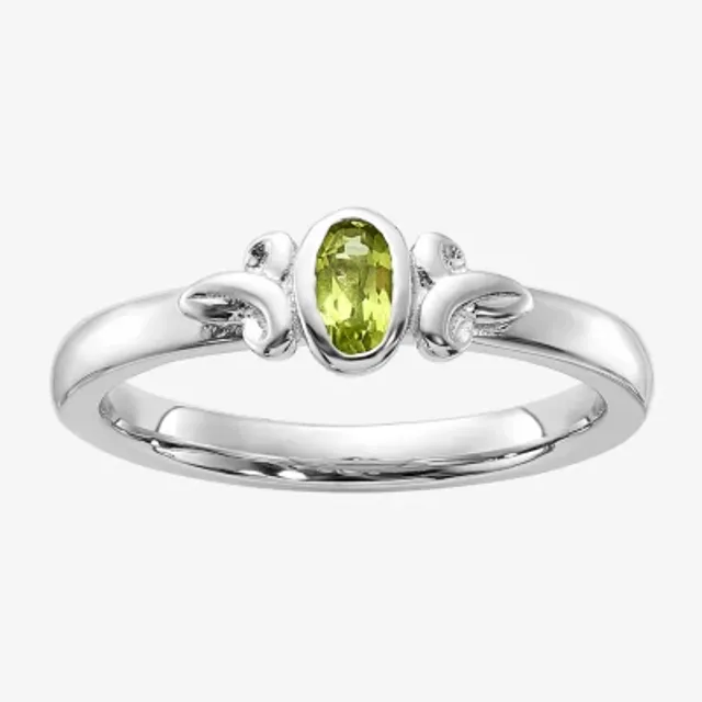 Womens Genuine Green Peridot Sterling Silver Oval Solitaire Stackable Ring