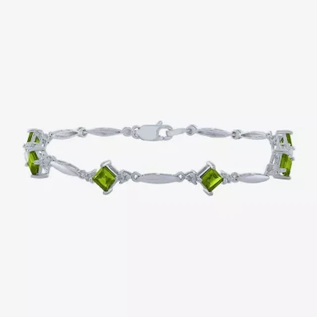 Womens Genuine Green Peridot Sterling Silver Tennis Bracelet