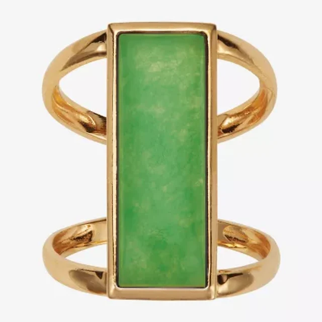 Womens Genuine Green Jade 18K Gold Over Silver Rectangular Cocktail Ring