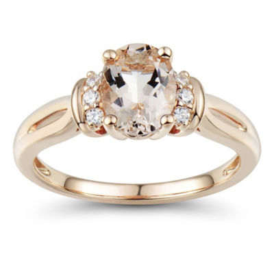 Womens Diamond Accent Genuine Pink Morganite 14K Rose Gold Cocktail Ring
