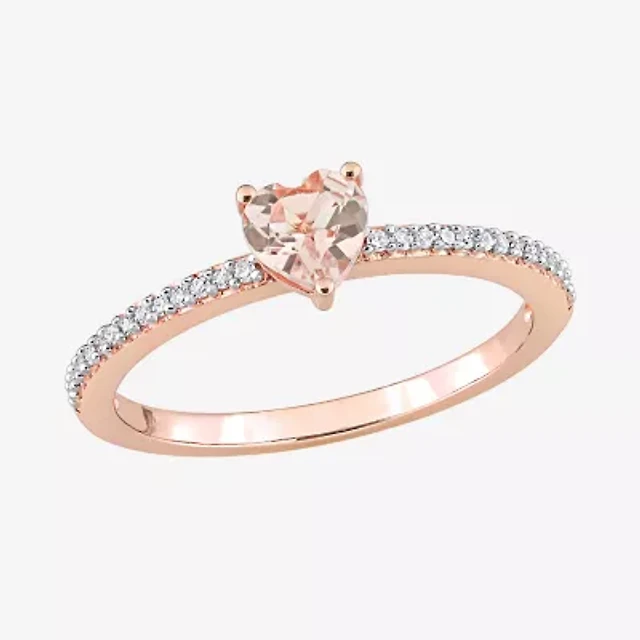 Womens Genuine Pink Morganite 10K Rose Gold Heart Cocktail Ring