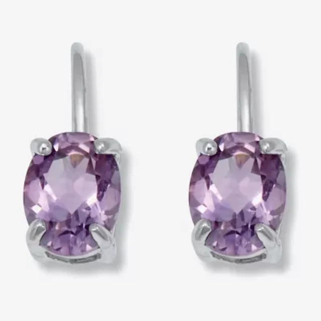 Womens Genuine Purple Amethyst Sterling Silver Oval Drop Earrings