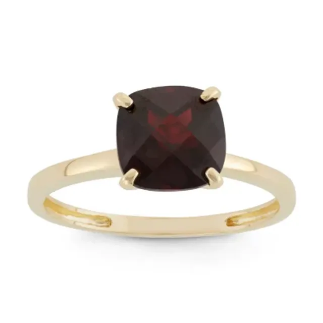 Womens Genuine Red Garnet 10K Gold Cushion Solitaire Cocktail Ring