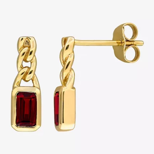 Womens Lab Created Red Ruby 10K Gold Drop Earrings