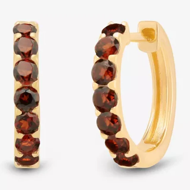 Womens Genuine Red Garnet 14K Gold Over Silver 10.3mm Round Hoop Earrings