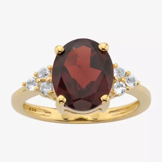 Womens Genuine Red Garnet 14K Gold Over Silver Oval Cocktail Ring