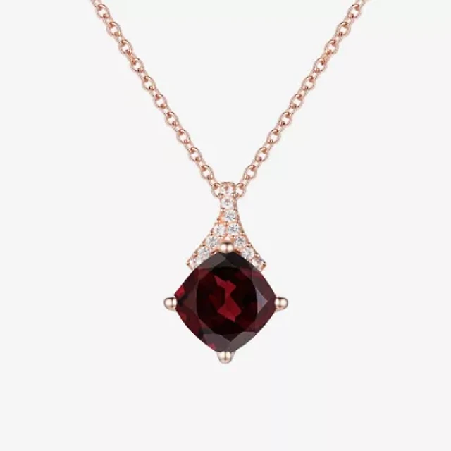 Womens Genuine Red Garnet 14K Rose Gold Over Silver 18 Inch Pendant Necklace