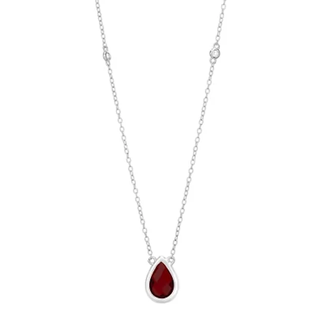 Womens Genuine Red Garnet Sterling Silver Pear 18 Inch Pendant Necklace