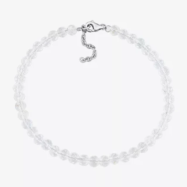 Womens Genuine White Topaz Sterling Silver Beaded Bracelet