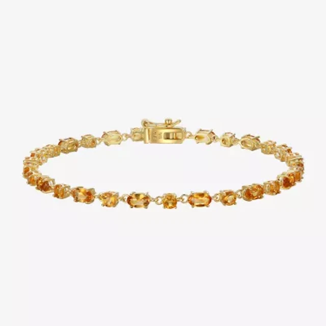 Womens Genuine Yellow Citrine 14K Gold Over Silver 7.25 Inch Tennis Bracelet
