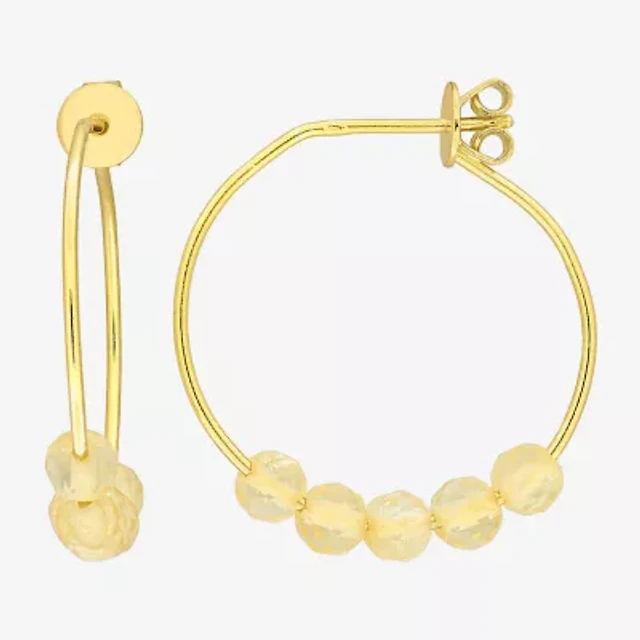 Womens Genuine Yellow Citrine 18K Gold Over Silver 26mm Hoop Earrings