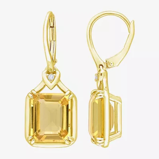 Womens Genuine Yellow Citrine 18K Gold Over Silver Drop Earrings