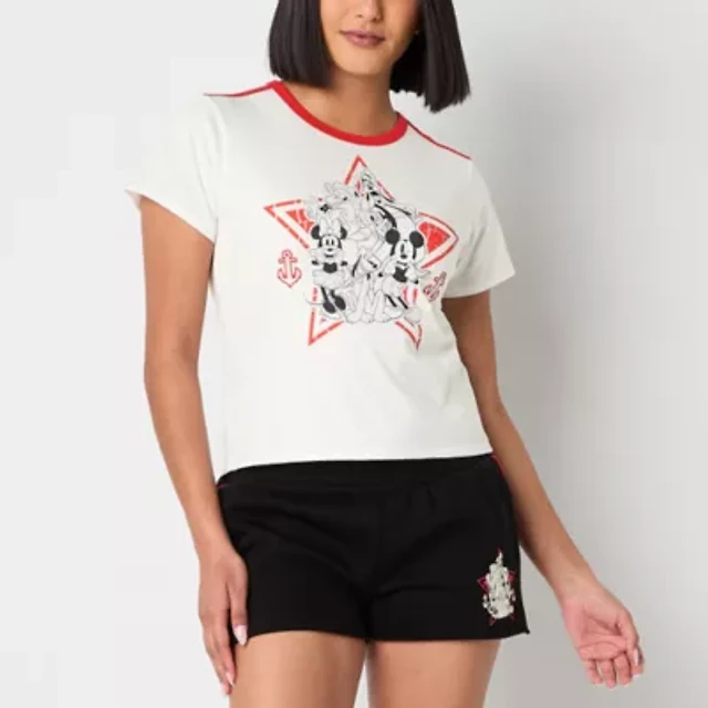 Womens Juniors Crew Neck Short Sleeve Regular Fit Mickey and Friends Graphic T-Shirt
