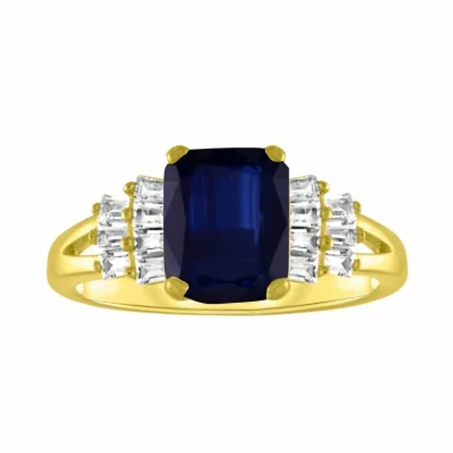 Womens Lab Created Blue Sapphire 14K Gold Over Silver Cocktail Ring