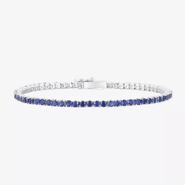 Womens Diamond Accent Lab Created Blue Sapphire Sterling Silver Tennis Bracelet