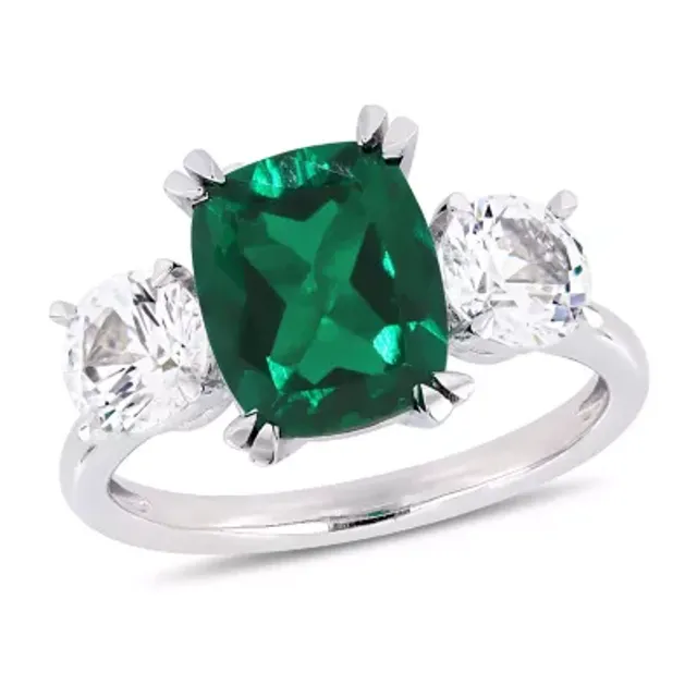 Womens Lab Created Green Emerald 10K White Gold 3-Stone Cocktail Ring