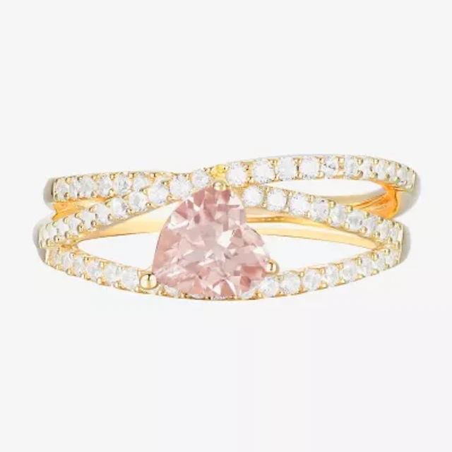 Womens Lab Created Pink Sapphire 14K Gold Over Silver Heart Crossover Side Stone Cocktail Ring