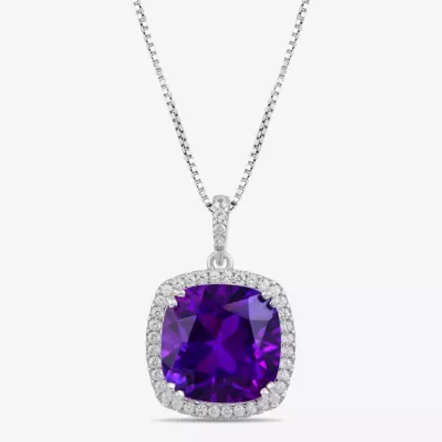 Womens Lab Created Purple Amethyst Sterling Silver Cushion 18 Inch Pendant Necklace
