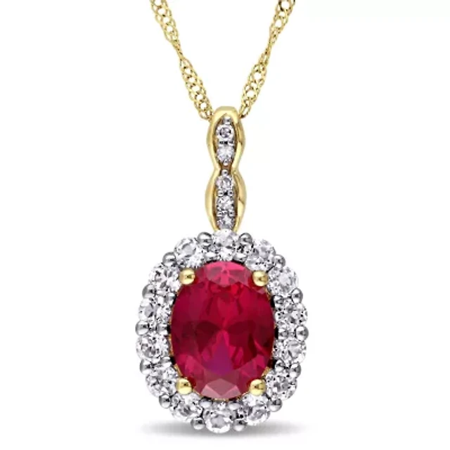 C Womens Lab Created Red Ruby 14K Gold Over Silver 18 Inch Pendant Necklace