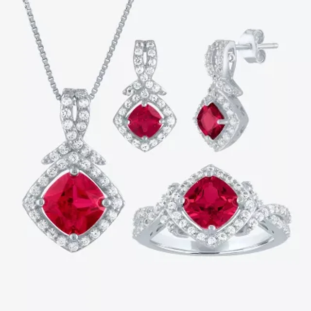 Womens Lab Created Red Ruby Sterling Silver 2-pc. Jewelry Set