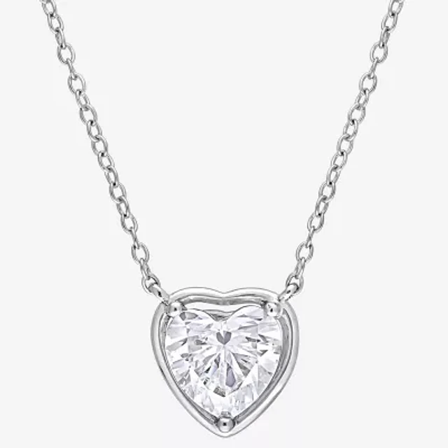 Womens Lab Created White Moissanite Sterling Silver Heart 18 Inch Pendant Necklace