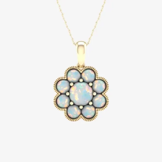 Womens Lab Created White Opal 14K Gold Over Silver Flower Pendant Necklace