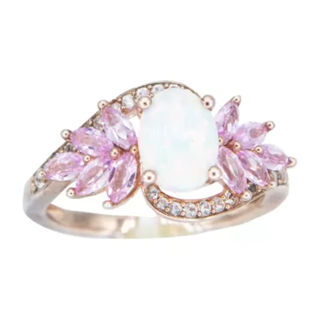 Womens Lab Created White Opal 14K Rose Gold Over Silver Cocktail Ring