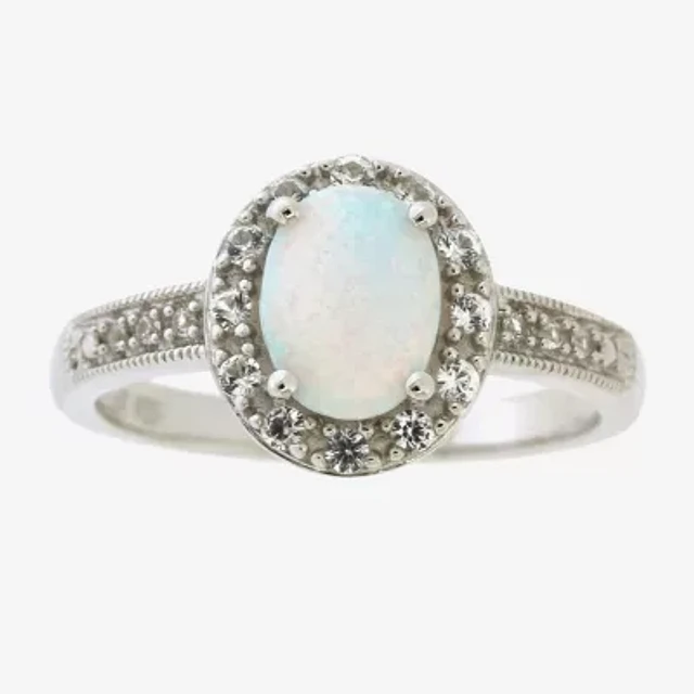 Womens Lab Created White Opal Sterling Silver Cocktail Ring