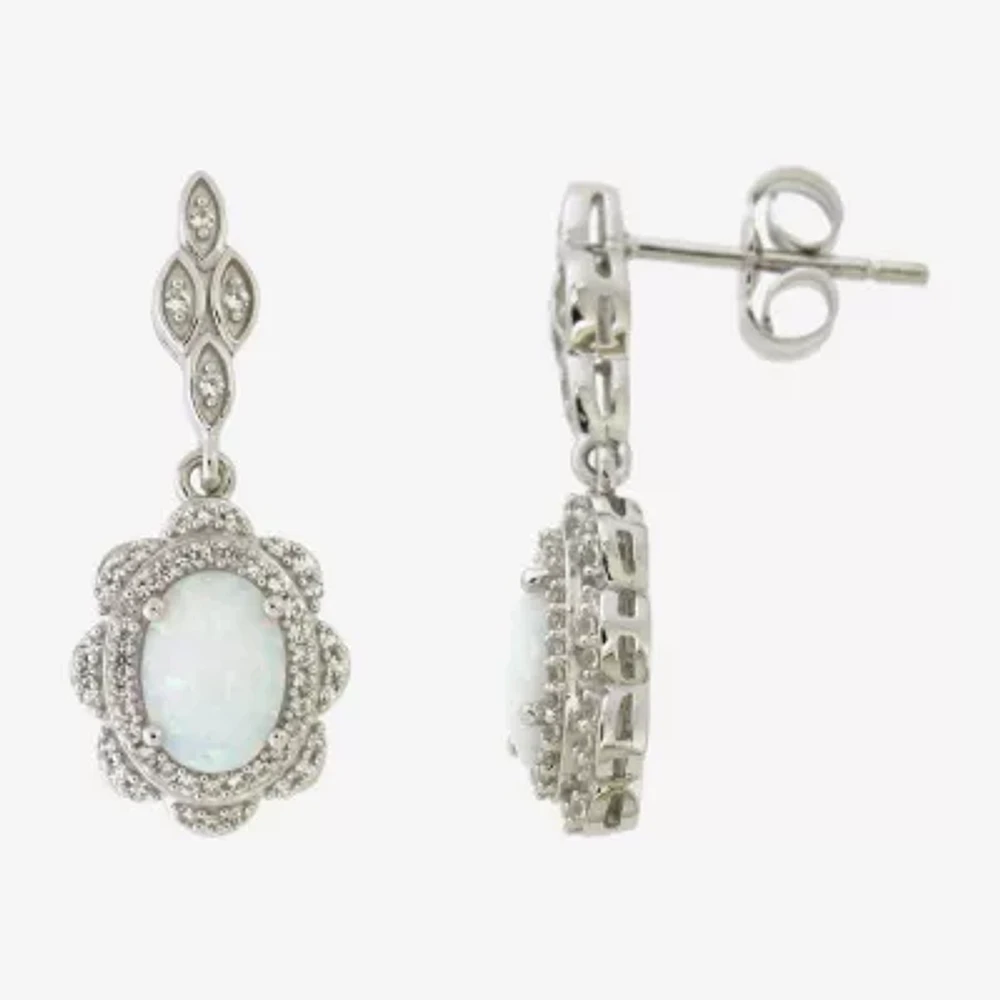 Womens Lab Created White Opal Sterling Silver Drop Earrings