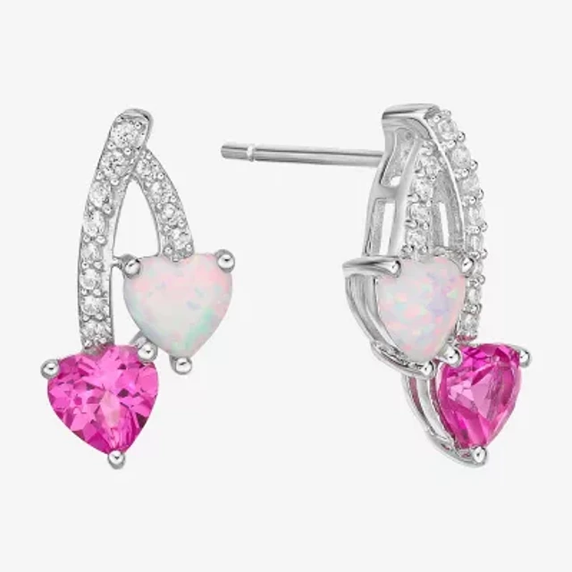 Womens Lab Created White Opal Sterling Silver Heart Drop Earrings