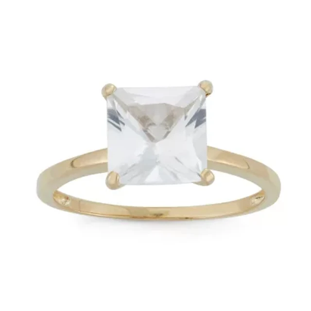 Womens Lab Created White Sapphire 10K Gold Solitaire Cocktail Ring
