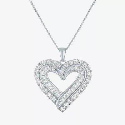 Womens Lab Created White Sapphire Sterling Silver Heart 18 Inch Pendant Necklace