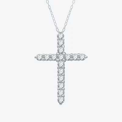 Yes Womens Lab Created White Sapphire Sterling Silver Cross 18 Inch Pendant Necklace