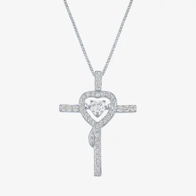 Womens Lab Created White Sapphire Sterling Silver Cross Heart 18 Inch Pendant Necklace
