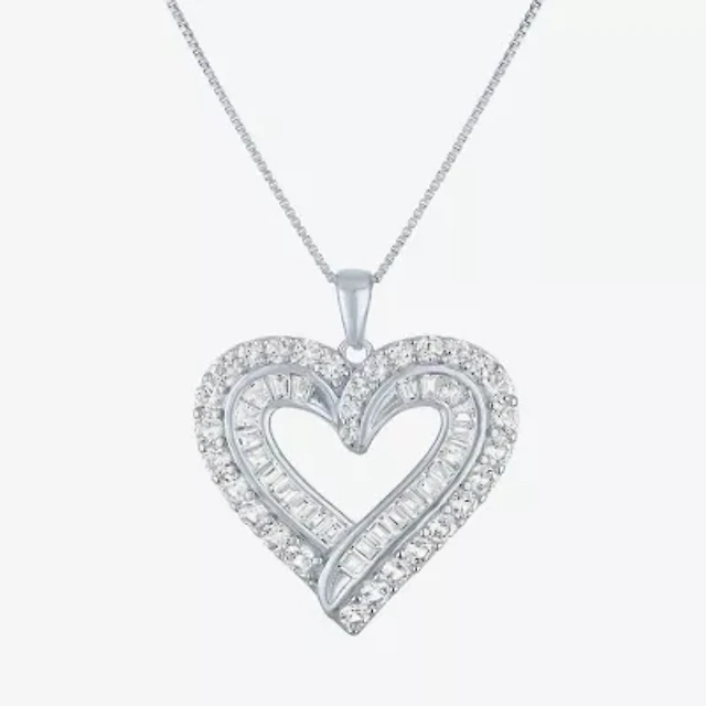 Womens Diamond Accent Lab Created White Sapphire Sterling Silver Heart 18 Inch Pendant Necklace