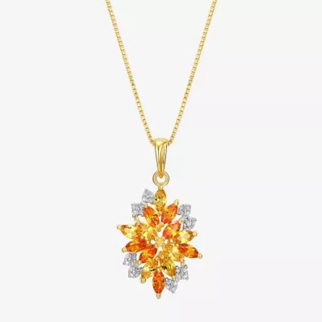 Womens Lab Created Yellow Sapphire 18K Gold Over Silver Flower 18 Inch Pendant Necklace
