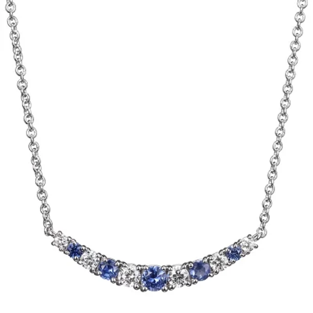 Womens 1/10 CT. T.W. Lab Created Blue Sapphire 10K Gold Sterling Silver Diamond 18 Inch Pendant Necklace