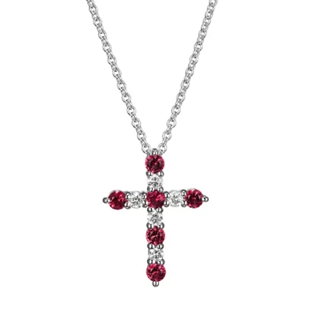 Womens Lab Grown Red Ruby & 1/8 CT. T.W. Lab Grown White Diamond Sterling Silver Cross Pendant Necklace