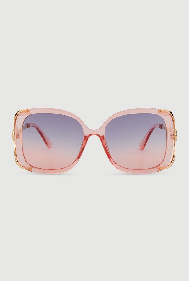 Womens Metallic Detail Gradient Lens Sunglasses, Pink