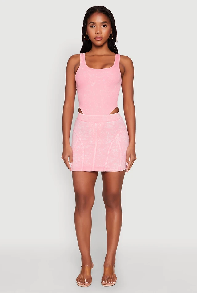 Womens Mineral Wash High Waist Mini Skirt, Pink, Size XL