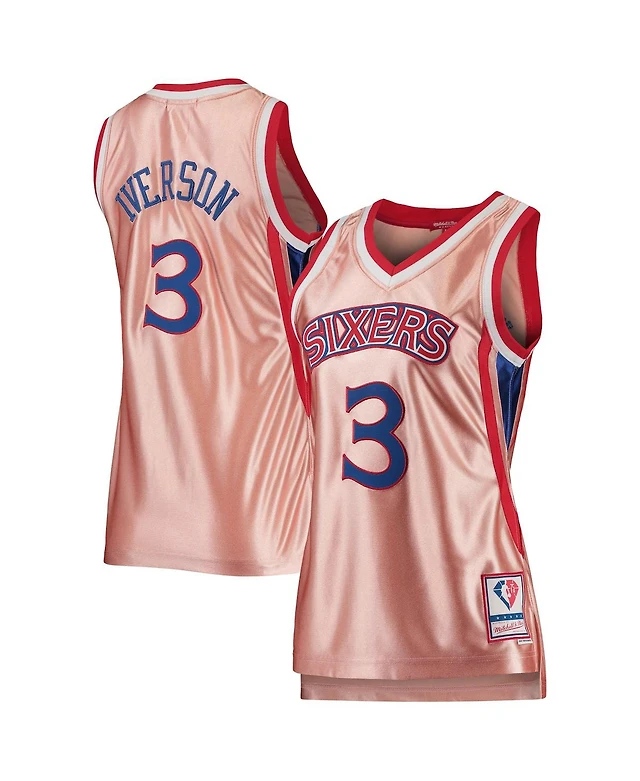 Women's Mitchell & Ness Allen Iverson Pink Philadelphia 76ers 75th Anniversary Rose Gold 1996 Swingman Jersey