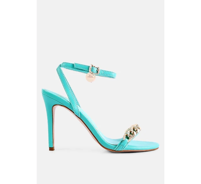 Womens Mooning Metal Chain Strap Stiletto Sandals