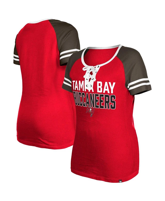 Women's New Era Red Tampa Bay Buccaneers Raglan Lace-Up T-shirt