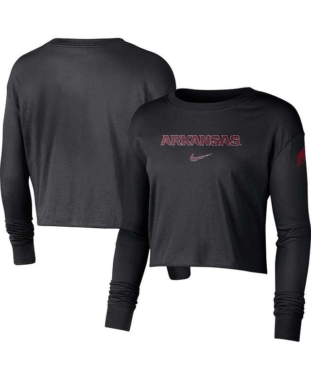 Women's Nike Black Arkansas Razorbacks 2-Hit Cropped Long Sleeve Logo T-shirt