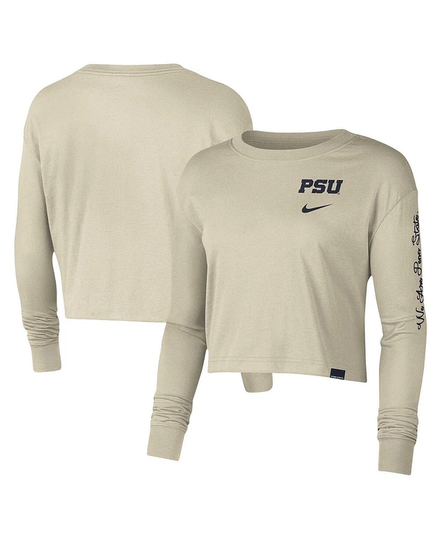 Women's Nike Cream Penn State Nittany Lions Varsity Letter Long Sleeve Crop Top